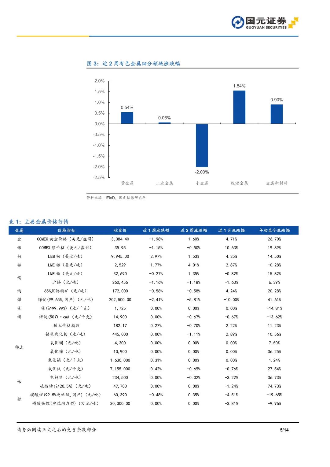 投资建议]article_adlist-->受全球地缘冲突、关税政策、美国通胀数据等多方面因素影响,市场避险情绪加剧,近两周黄金价格有所回升。海外方面,刚果宣布钴出口临时禁令,供给端持续收紧。国内方面,稀土管制及出口政策持续更新红领金服,关注稀土价格走势分化,近期建议重点关注贵金属及稀土投资机会。