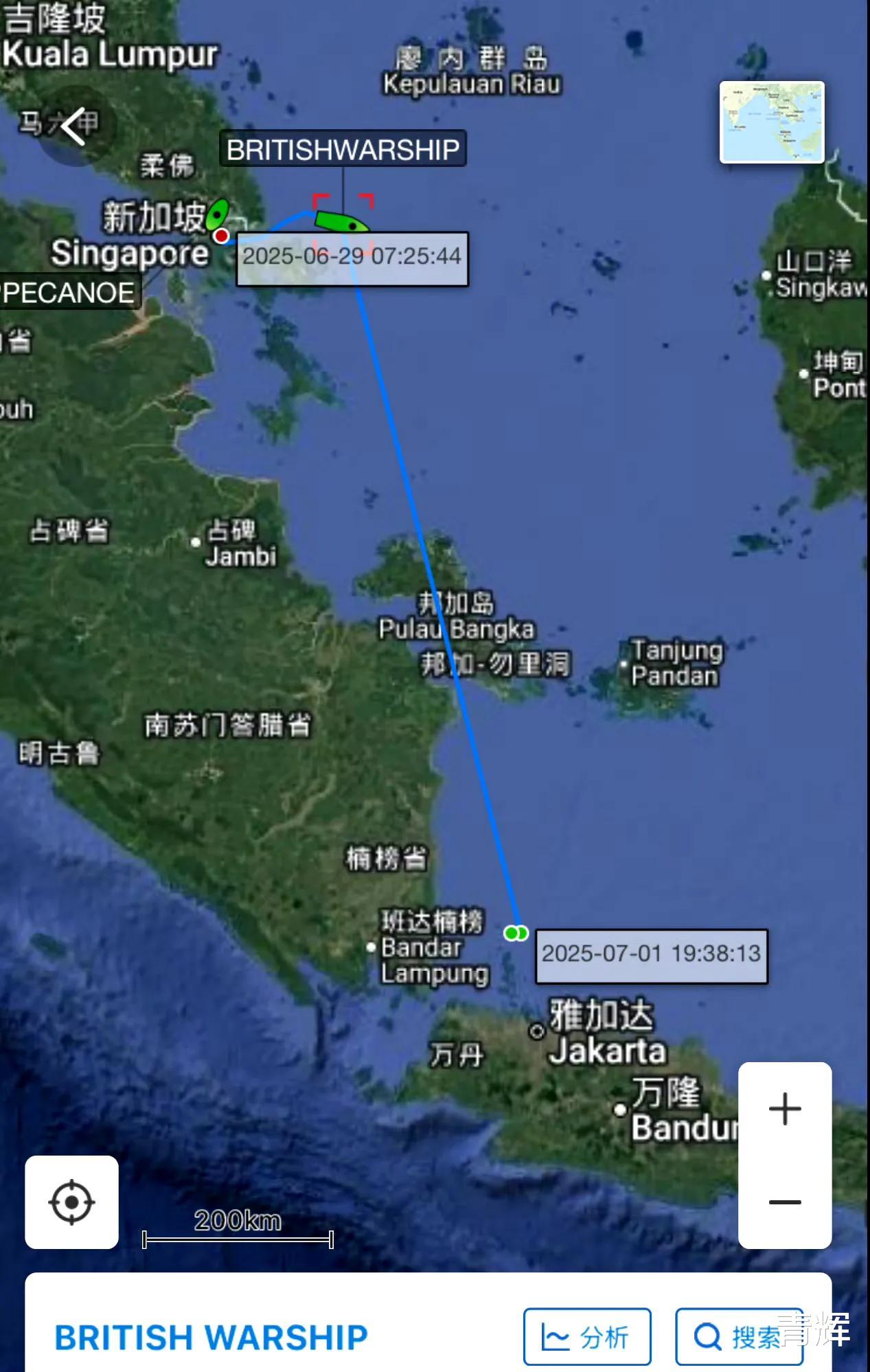 也就是说,英国航母来到印太进行部署,很大一部分原因就是想要针对我国。现在他们刚在新加坡落脚,中国航空母舰就开始调动,英国人自然会非常的关心。而截止到我们发稿之时,根据最新的船舶航行数据显示可以得知,目前威尔士亲王号航空母舰已经离开新加坡港口,开始前往巽他海峡的方向前进,从这个方向来看,英国人的航母正在远离南海。接下来极有可能会进入澳大利亚附近的海域,因为在7月份英国航母要参加由澳大利亚主导的多国联合演习。