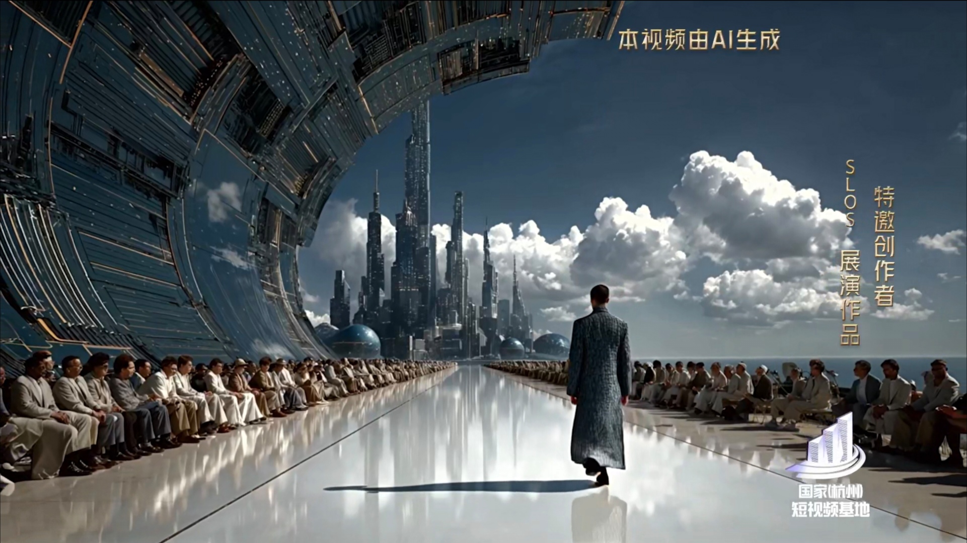 借助AI工具,“SLOS”的创作者邓理汲取江南文化的柔美气质,融合良渚古文明文化图腾与未来科技,创新打造了一场“良渚2125”时装秀。宏大的超现实秀场里,不仅有科技范儿拉满的未来时尚,中国良渚数字文化社区、玉鸟集、万劢德芯云城影视基地等标志性建筑也都焕然一新,让脱口秀演员徐志胜惊叹不已。